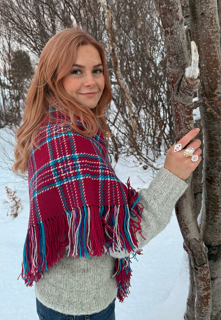 ULLSJAL by TEKZINEDisse vakre ullsjalene er håndvevd i 100 % ull og kommer i en vakker og sjelden bringebærrød nyanse. Med kun et begrenset antall tilgjengelig, får du et unikt og eksklusivt plagg som skiller seg ut.