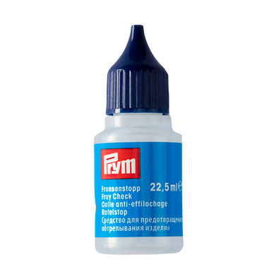 Prym frynselim, kjent som Fray Check, er en fargeløs væske designet for å forhindre at tekstiler frynser seg. Den forsterker og binder stoffoverflater, noe som gjør den ideell for bruk på områder som knapphull, sømmer, skjortekrager og mansjetter.