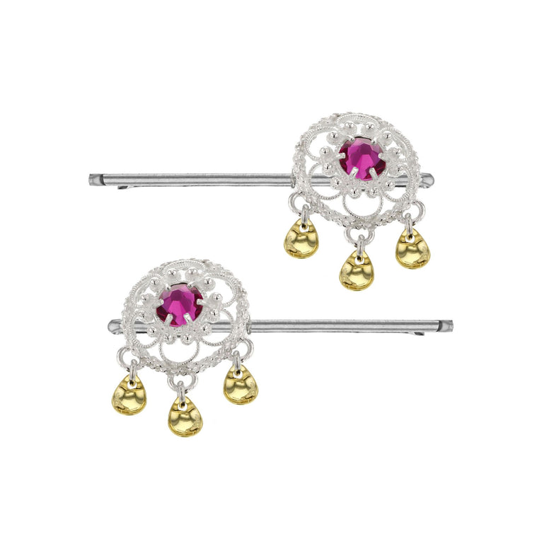 Denne hårnålen kombinerer det feminine og tidløse på en harmonisk måte, og passer perfekt til oppsatte frisyrer eller som en dekorativ detalj i løst hår. Den dype rosatonen i krystallen gir et sofistikert og varmt uttrykk – ideell både til hverdags og spesielle anledninger.