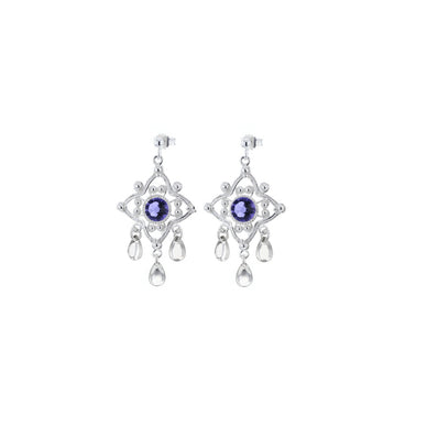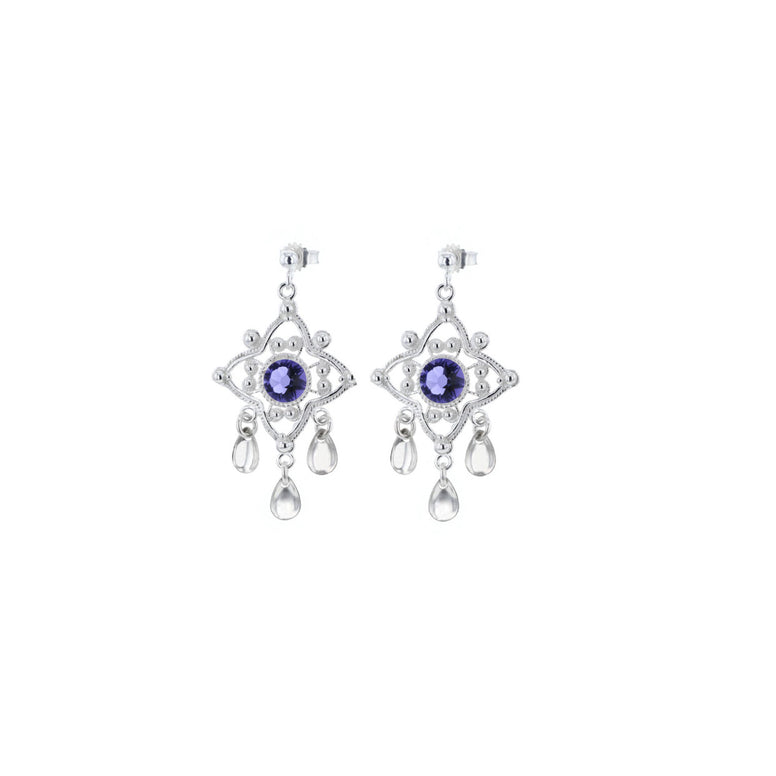 Disse vakre øredobbene fra Hasla har en stjerneform med én blålilla krystall i hver ørepynt som, og dekorative gull-løv som henger ned. De er laget i ekte 925 sølv og holder høy kvalitet, perfekt både til hverdag og fest. Finnes matchende ring for et komplett sett.