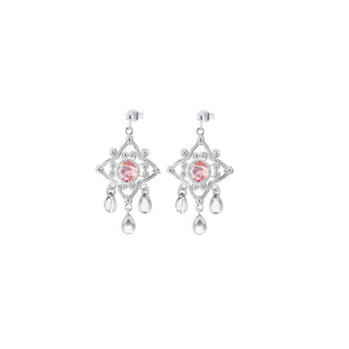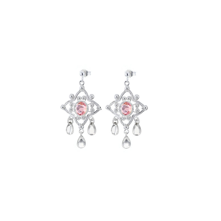 Disse vakre øredobbene fra Hasla har en stjerneform med én lyserosa krystall i hver ørepynt, og dekorative sølv-løv som henger ned. De er laget i ekte 925 sølv og holder høy kvalitet, perfekt både til hverdag og fest. Finnes matchende ring for et komplett sett.