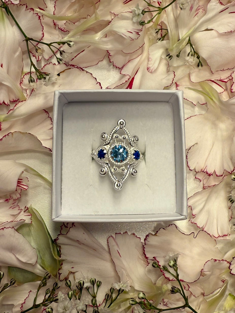 Denne ringen fra Hasla har en vakker stjerneform med mørkeblå og lyseblå krystallsten. Den er laget i ekte 925 sølv og holder høy kvalitet, perfekt både til hverdag og fest. Matchende øredobber finnes for et komplett sett.