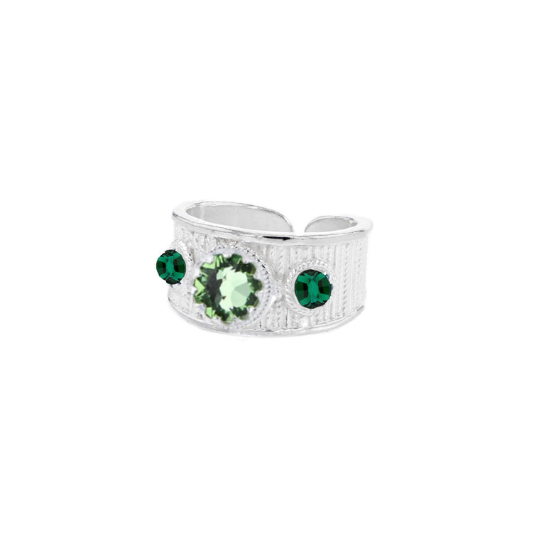 Ring med mørkegrønn og lysegrønn krystall - utsolgt