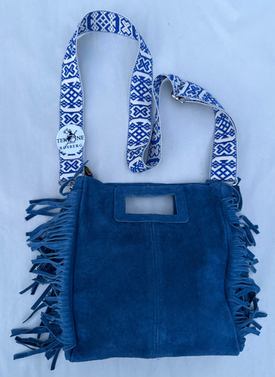 Vesken har en samisk-inspirert veskestropp. En detalj som gjør vesken både behagelig å bære og spesiell i – perfekt til både hverdag og fest.