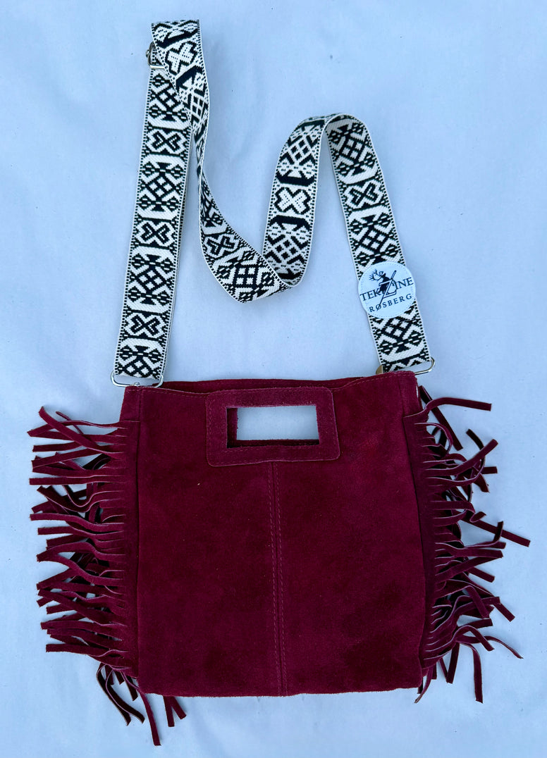 Vesken har en samisk-inspirert veskestropp. En detalj som gjør vesken både behagelig å bære og spesiell i – perfekt til både hverdag og fest.
