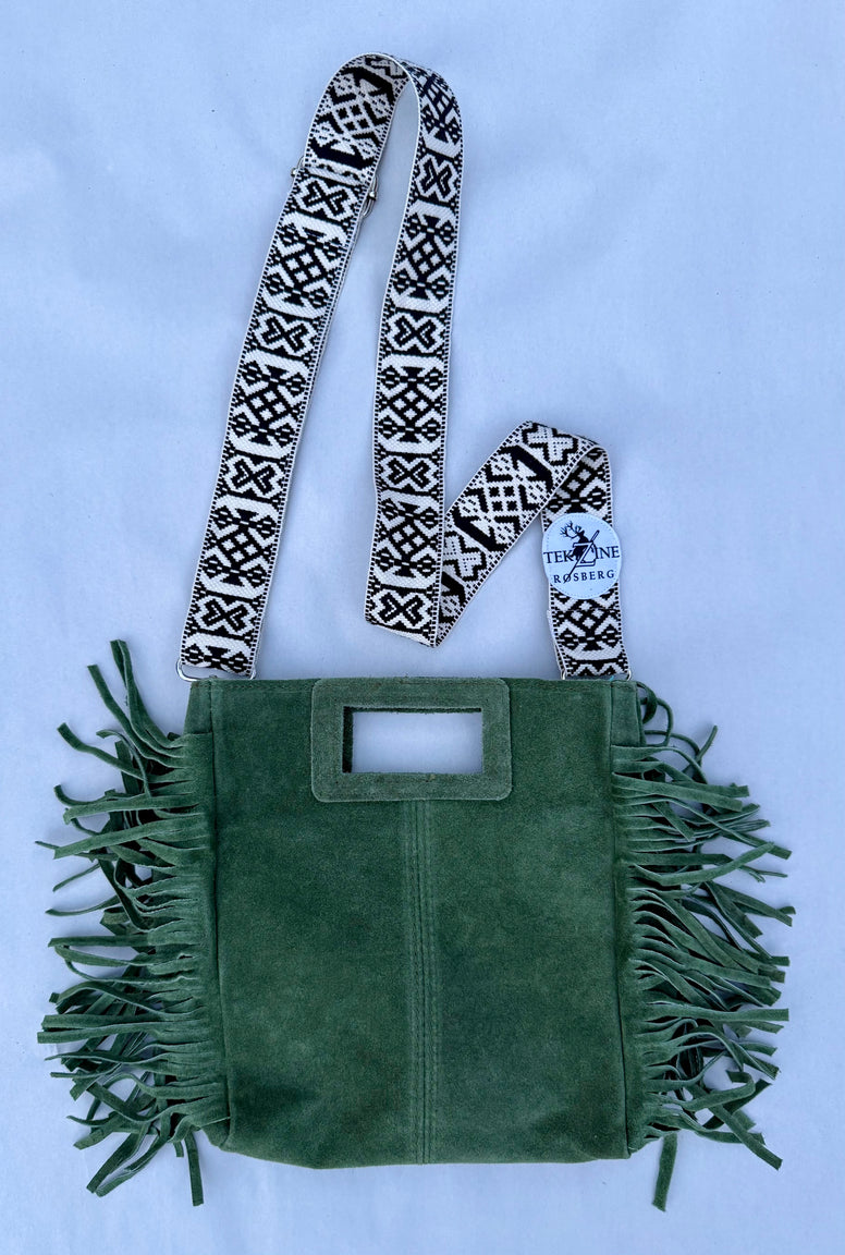 Vesken har en samisk-inspirert veskestropp. En detalj som gjør vesken både behagelig å bære og spesiell i – perfekt til både hverdag og fest.