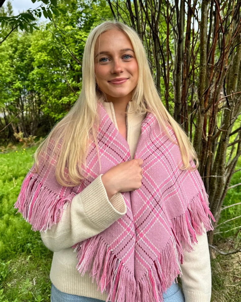 Disse håndvevde ullsjalene er laget av 100 % ull og finnes i et få antall – i en vakker og delikat rosa farge. Med sin perfekte størrelse på 100 x 100 cm er det både praktisk og stilfullt.