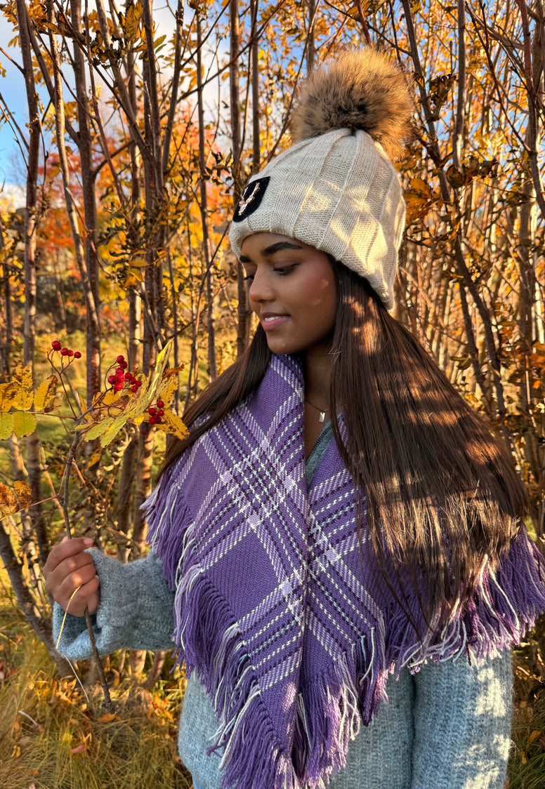 Eksklusivt ullsjal laget av 100 % ull i en klassisk og tidløs lilla farge. Med sin allsidige størrelse på 100 x 100 cm er sjalet både praktisk og stilfullt.