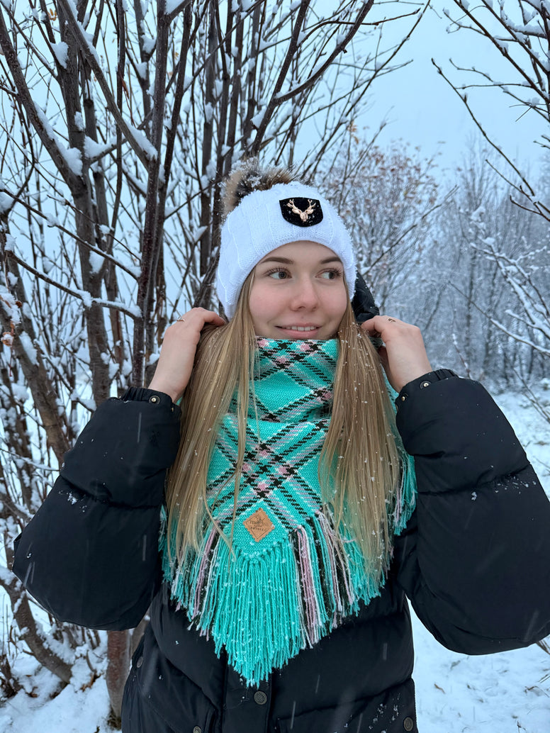 Disse unike ullsjalene er håndvevd i 100 % ull, og kommer i en sjelden og strålende turkis farge. Med sitt eksklusive uttrykk og begrensede opplag er dette sjalet perfekt for deg som ønsker noe helt spesielt.